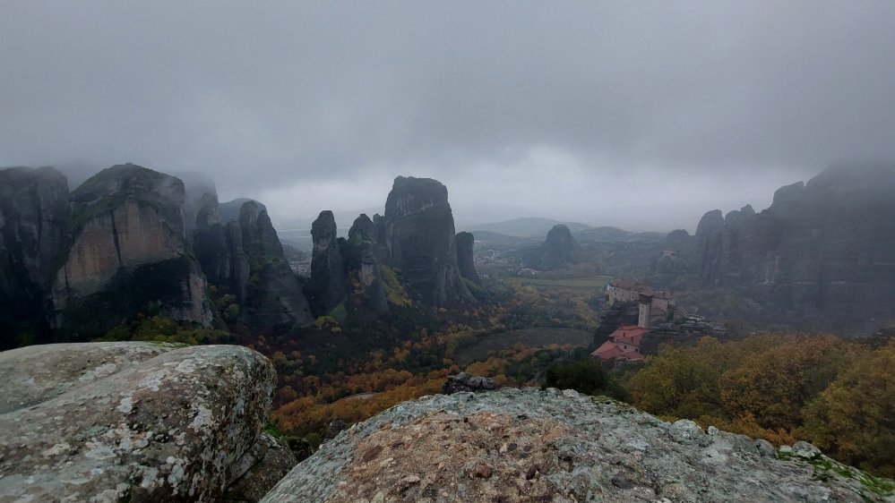 Griechenland begrüßte uns mit Regen. Auch die folgenden Tage blieb es grau vernebelt und es regnete viel. In den Regenpausen besuchten wir die Vikos-Schlucht (angeblich die tiefste Schlucht der Welt, wie auch immer ermittelt🤣) und die Meteora-Klöster.